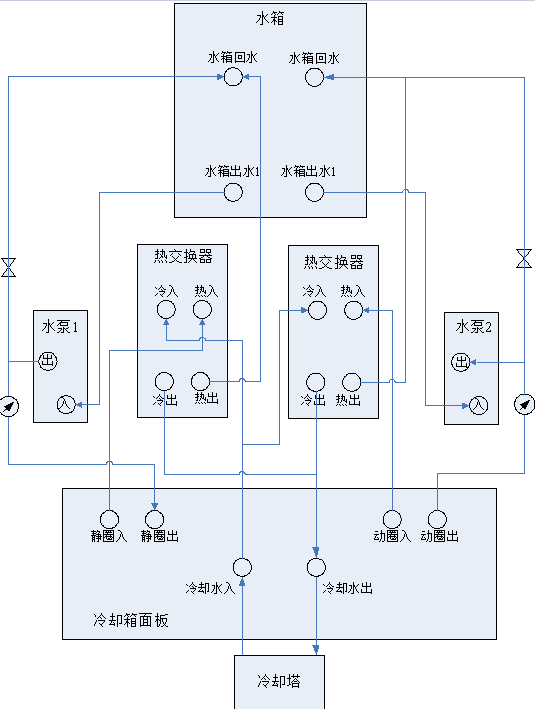 航天希爾振動臺冷卻系統(tǒng)內(nèi)部連接圖